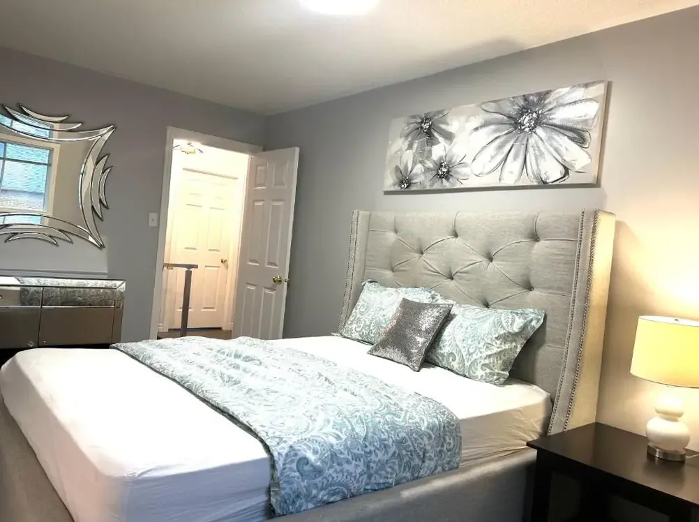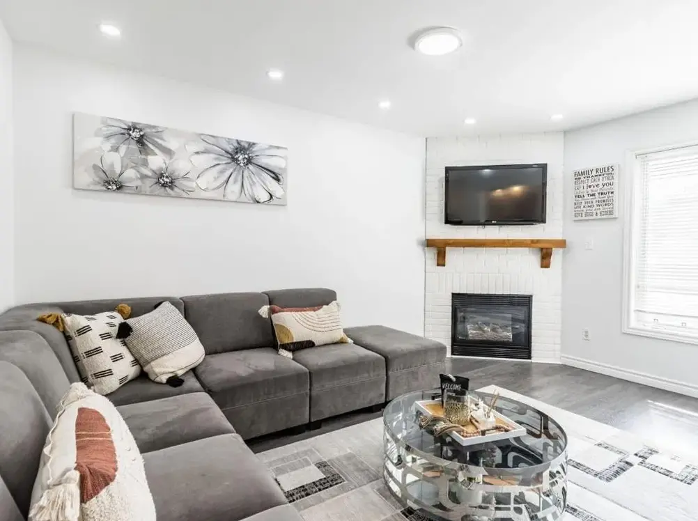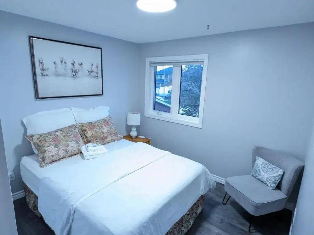宽敞的住宿:4 卧室 2.5 浴室住宅!位于奥兰治维尔的宽敞公寓设有四间卧室和三间浴室。酒店铺有瓷砖和镶木地板,确保所有客人的舒适。现代设施:客人可以享受免费 WiFi、空调和流媒体服务。公寓设有带冰箱、烤箱、炉灶和洗碗机的设备齐全的厨房。其他设施包括洗衣机、用餐区和办公桌。户外空间: 私人花园提供休闲的户外区域。庭院配有户外家具,非常适合欣赏花园美景。位置便利:距离多伦多皮尔逊国际机场 30 英里,距离奥兰治维尔剧院 1.4 英里。附近的景点包括密西沙加会议中心和阿波罗会议中心,距离酒店各 30 英里。
